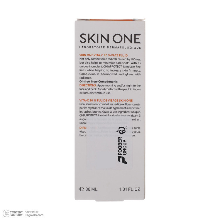 بروز چین و چروک و تیرگی پوست صورت، امری طبیعی است که برای بسیاری افراد اتفاق می افتد و علت آن ممکن است افزایش سن، ژنتیک، استرس، خشکی پوست و اشعه های مضر خورشید باشد. می توان با استفاده از محصولاتی نظیر کرم مرطوب کننده، جوان کننده و … از بروز این مسائل جلوگیری کرده و یا آنها را برطرف نمود. فلویید صورت 20% ویتامین C اسکین وان همچنین نقش بسزایی در رطوبت رسانی به پوست، انرژی بخشی به آن و رفع التهاب و قرمزی پوست ایفا می کند. برند ایرانی اسکین وان، با استفاده از فرمولاسیون فرانسوی و ترکیبات موثر، اقدام به تولید محصولات تخصصی پوست کرده است.