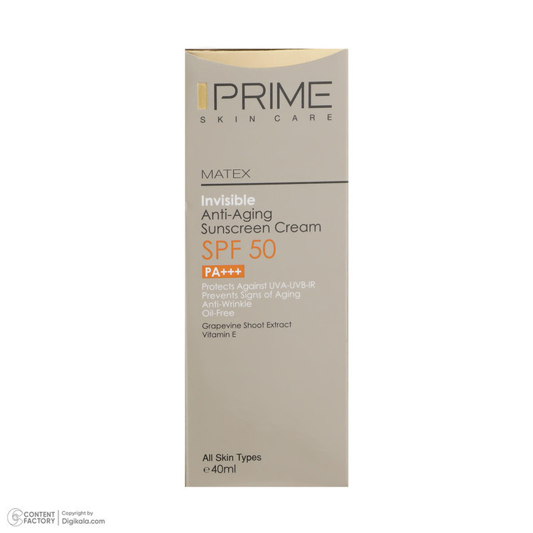 کرم ضد آفتاب و ضد چروک بی رنگ پرایم مدل Matex Colorless SPF50 مناسب انواع پوست حجم 40 میلی لیتر