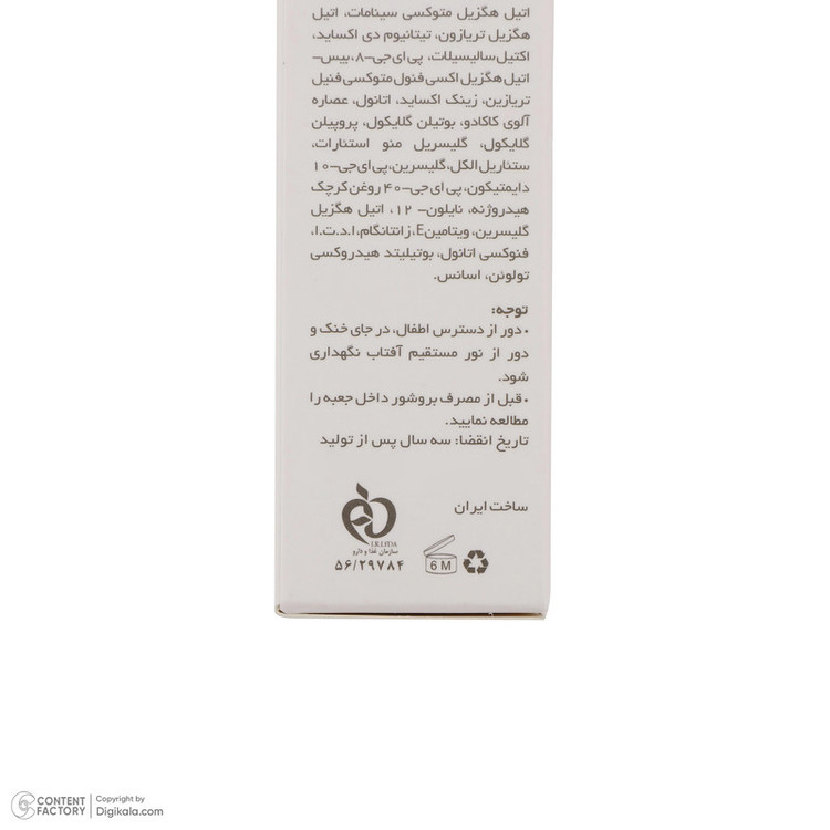 قسمت هایی از پوست که در معرض نور خورشید قرار می گیرد (صورت و پشت دست ها) را با مقدار کافی از محصول بپوشانید. هر 2 ساعت یک بار تجدید شود.