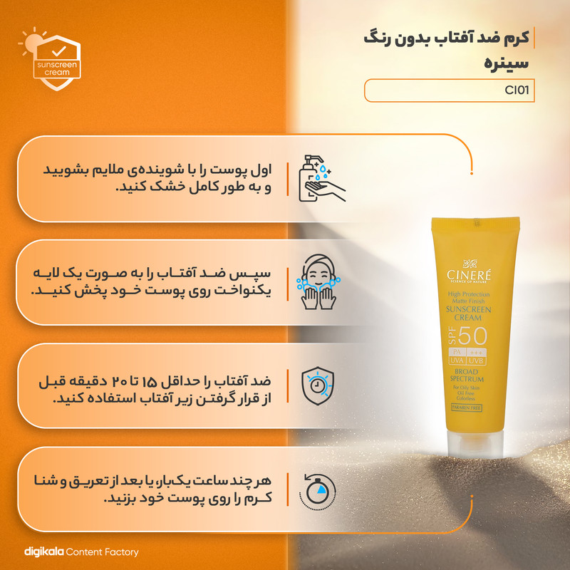 کرم ضدآفتاب سینره مدل CI01، حجم 50 میلیلیتر