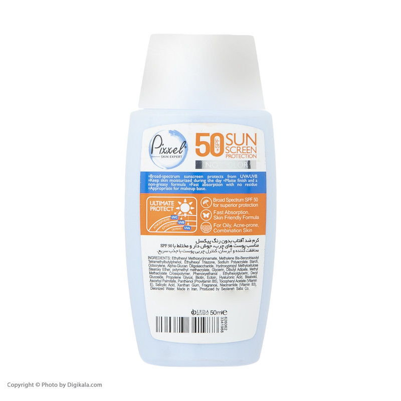 کرم ضدآفتاب بی‌رنگ پیکسل SPF50 مدل Oily Acne-Prone Skin، مناسب پوست‌های چرب، حجم 50 میلی‌لیتر