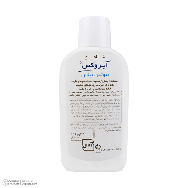 این محصول فاقد سولفات، پارابن و نمک بوده و با شویندگی ملایم و ph سازگار با پوست سر و مو سبب حفظ رطوبت ساقه و کاهش تحریک پذیری پوست سر می شود. همچنین با داشتن بیوتین و عصاره های گیاهی سبب بهبود کراتین سازی، افزایش ضخامت ساقه و استحکام ریشه مو میگردد.