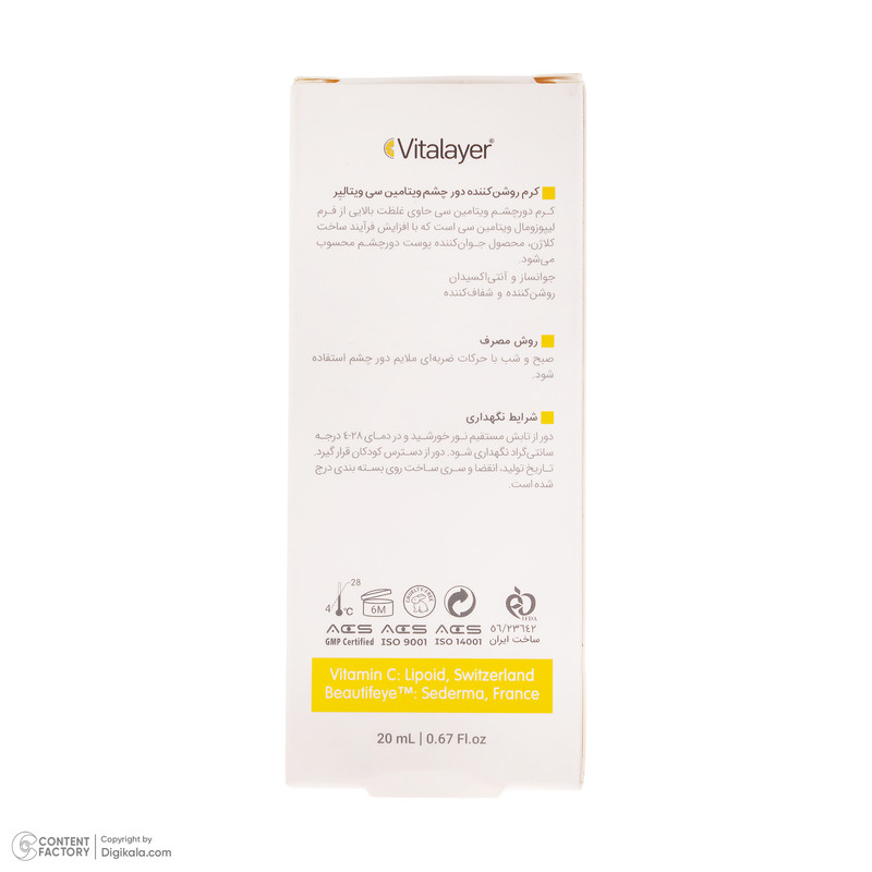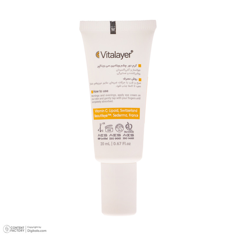 حاوی غلظت بالایی از فرم لیپوزومال ویتامین سی است که با افزایش فرآیند ساخت کلاژن، محصول جوانکننده پوست دور چشم محسوب میشود.