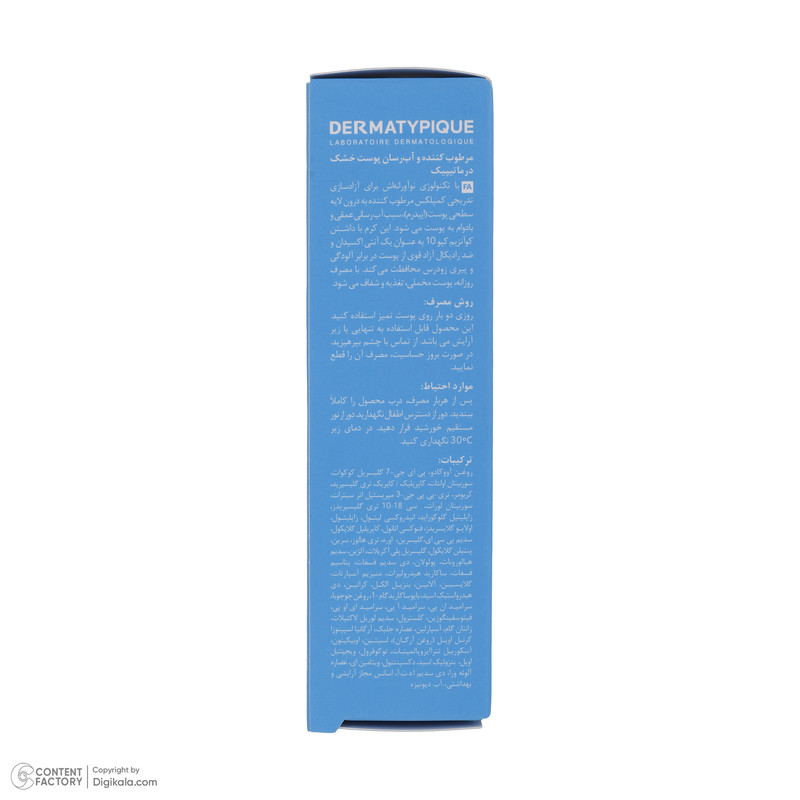 راهنمای استفاده : روزی دو بار روی پوست تمیز کرم آبرسان درماتیپیک استفاده کنید.