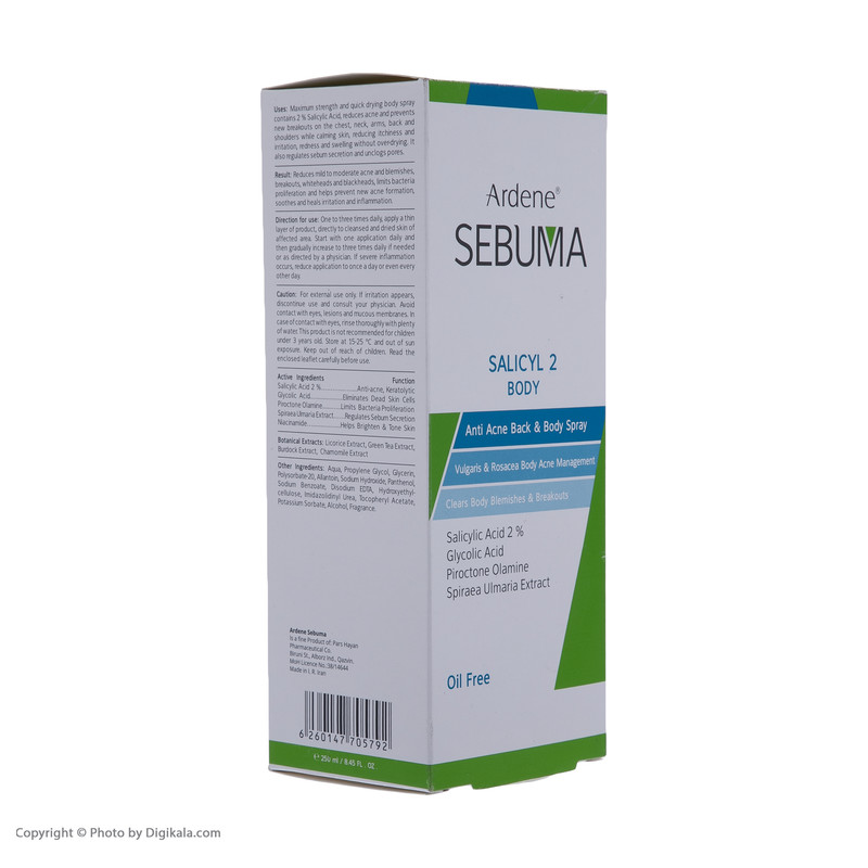 اسپری ضد جوش آردن سبوما مدل SALICYL2 حجم 250 میلی لیتر