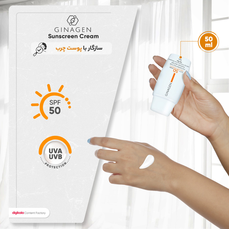 کرم ضدآفتاب بیرنگ ژیناژن مدل SPF50، مناسب پوستهای چرب، حجم 50 میلیلیتر