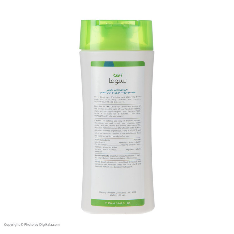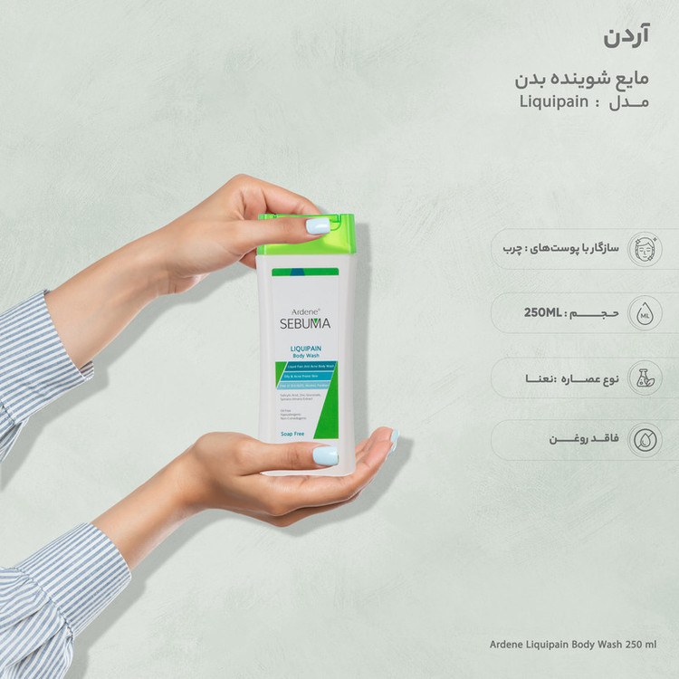مایع شوینده غیر صابونی بدن آردن سبوما مدل Liquipain مناسب پوست های چرب حجم 250 میلی لیتر