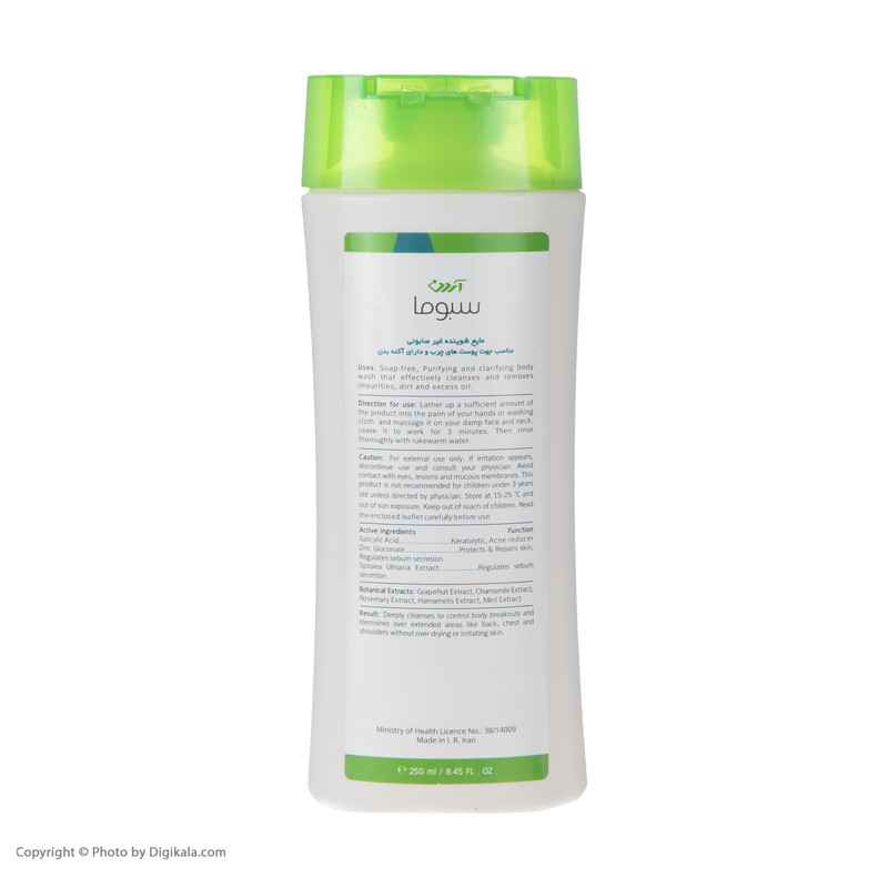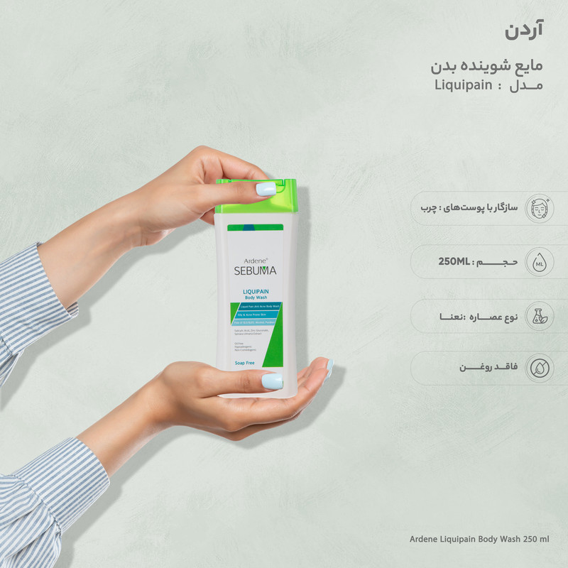 مایع شوینده غیر صابونی بدن آردن سبوما مدل Liquipain مناسب پوست های چرب حجم 250 میلی لیتر