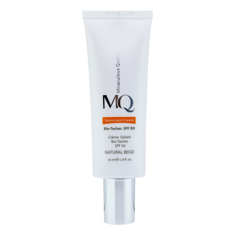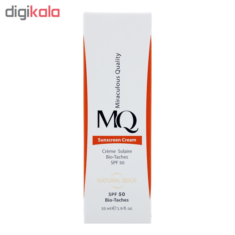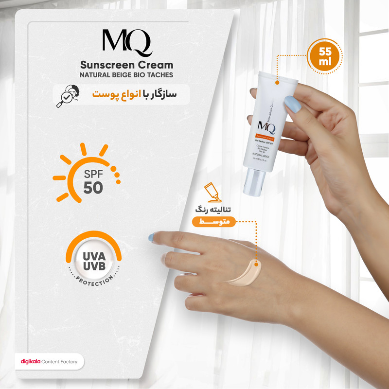 کرم ضدآفتاب رنگی ام کیو SPF50 مدل NATURAL BEIGE BIO TACHES مناسب انواع پوست، حجم 55 میلیلیتر