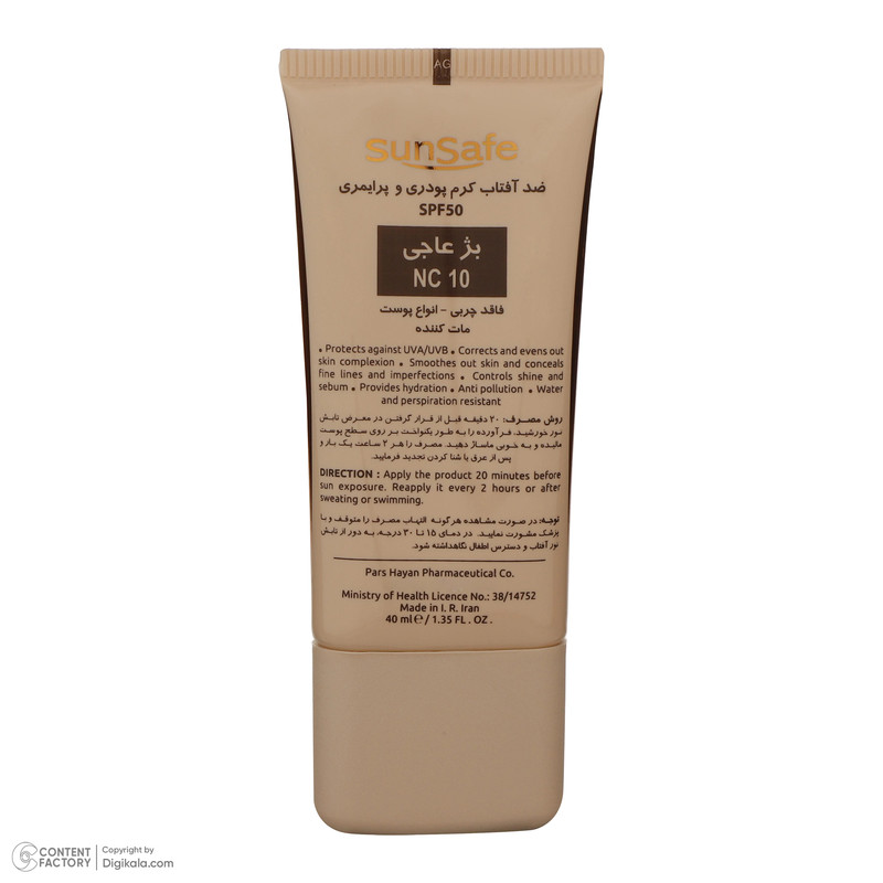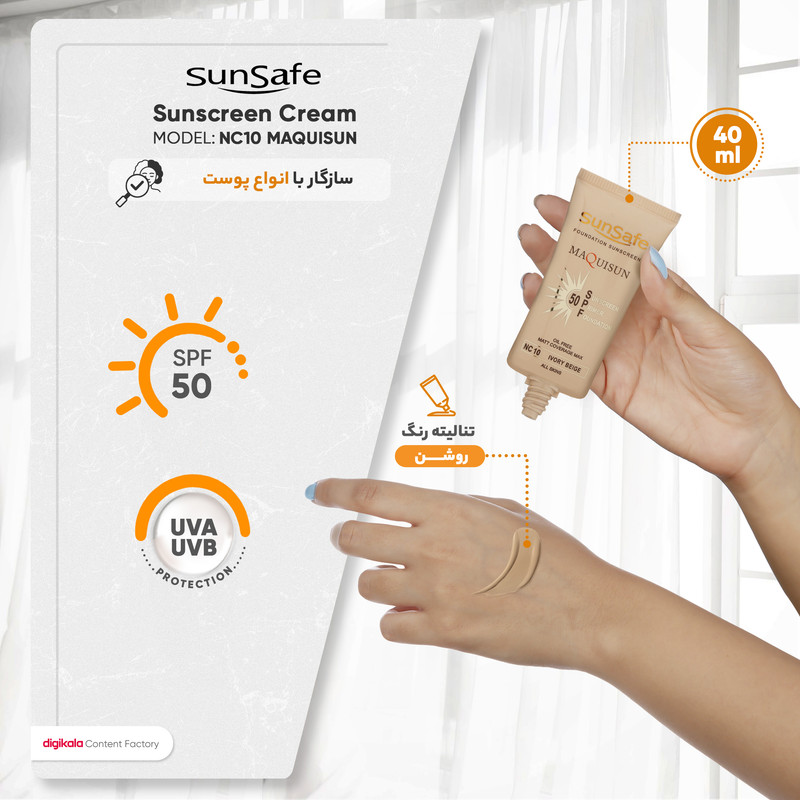 کرم ضدآفتاب رنگی سان‌سیف مدل NC10 مقدار 40 گرم