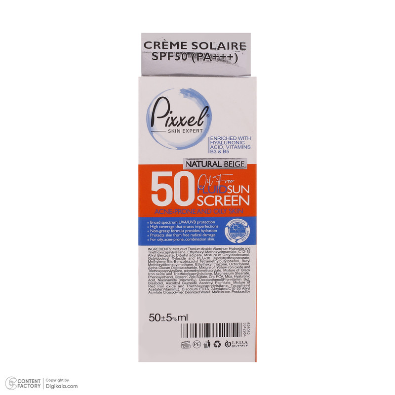 کرم ضدآفتاب پیکسل با SPF 50 و PA+++، محصولی با کیفیت است که برای محافظت کامل از پوست در برابر اشعههای مضر خورشید طراحی شده است. این کرم با ترکیبات خاص خود، از جمله هیالورونیک اسید، فاقد چربی و مناسب برای انواع پوستهای آکنهای، چرب و مختلط است. این محصول با حجم 50 میلیلیتر و تنالیته رنگ متوسط، علاوه بر محافظت از پوست، ظاهری زیبا و طبیعی به آن میبخشد. با رنگی ملایم و طبیعی، کرم ضدآفتاب پیکسل به عنوان یک پایه آرایش مناسب برای روزهای آفتابی کاربرد دارد و به یکنواختی رنگ پوست کمک میکند. فرمولاسیون فاقد چربی این کرم، آن را برای پوستهای چرب، مختلط و آکنهای مناسب میسازد. بسیاری از افراد با پوستهای چرب و مختلط در جستجوی کرمی هستند که بدون افزایش چربی و براقی پوست، از آن محافظت کند. کرم ضدآفتاب پیکسل با ترکیب فاقد چربی، این نیاز را برآورده کرده و به کنترل تولید چربی اضافه پوست کمک میکند.