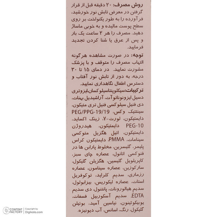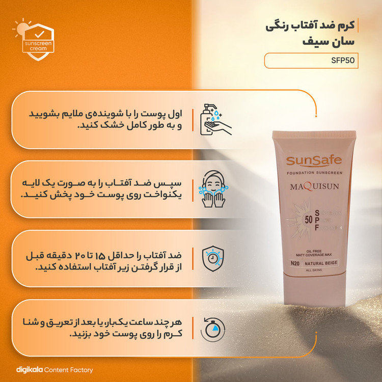 کرم ضدآفتاب رنگی سانسیف، محصولی با کیفیت و کارآمد برای حفاظت از پوست صورت در برابر اشعههای مضر خورشید است. این کرم با SPF 50، پوششی مناسب و محافظتی کامل را برای انواع پوستها ارائه میدهد. این کرم ضدآفتاب با حجم 40 میلیلیتر و در بستهبندی تیوپی پلاستیکی، استفاده آسان و بهداشتی را فراهم میکند. ترکیب خاص این محصول شامل عصارههای طبیعی رزماری، چای سبز و سینامون است که علاوه بر حفاظت از پوست، به آن لطافت و شادابی میبخشد. یکی از ترکیبات اصلی این محصول، زینک اکساید است که به عنوان یک عامل محافظ در برابر اشعههای UV عمل میکند. زینک اکساید با ایجاد یک سد فیزیکی بر روی پوست، از نفوذ اشعههای مضر جلوگیری کرده و پوست را از آسیبهای احتمالی محافظت میکند. علاوه بر این، این کرم فاقد چربی است که از ایجاد سنگینی و چربی اضافی بر روی پوست جلوگیری میکند و برای انواع پوست، حتی پوستهای چرب، مناسب است. همچنین، جلوه مات این کرم ضدآفتاب، ظاهری طبیعی و زیبا را به پوست میبخشد، بدون اینکه احساس سنگینی یا براقیت به پوست بدهد.
