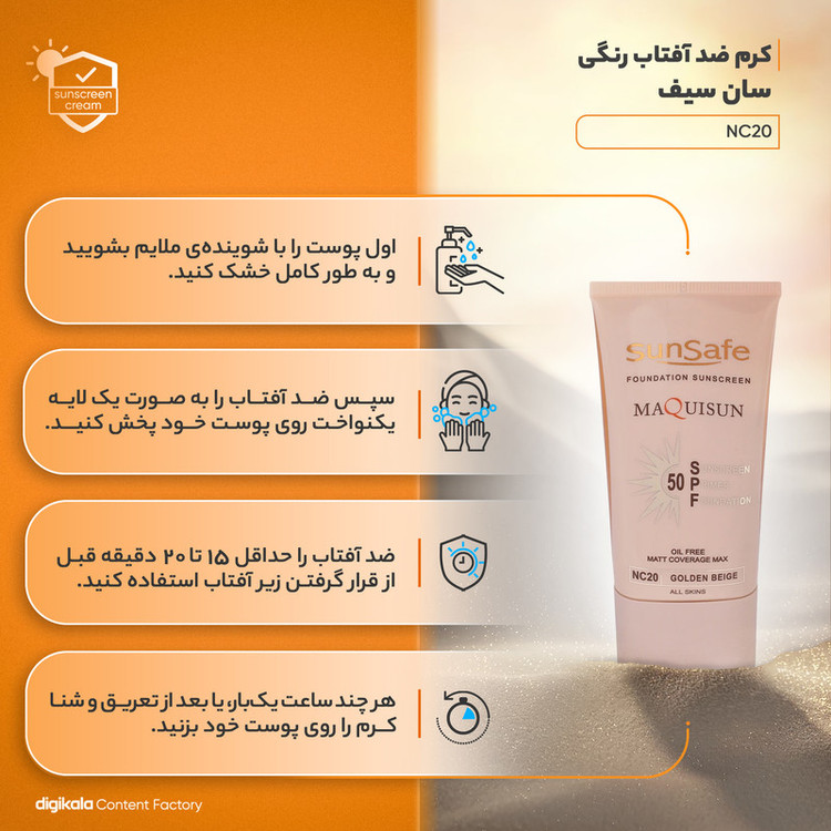 کرم ضدآفتاب رنگی سان‌سیف SPF50 مدل NC20 مناسب انواع پوست، حجم 40 میلی‌لیتر