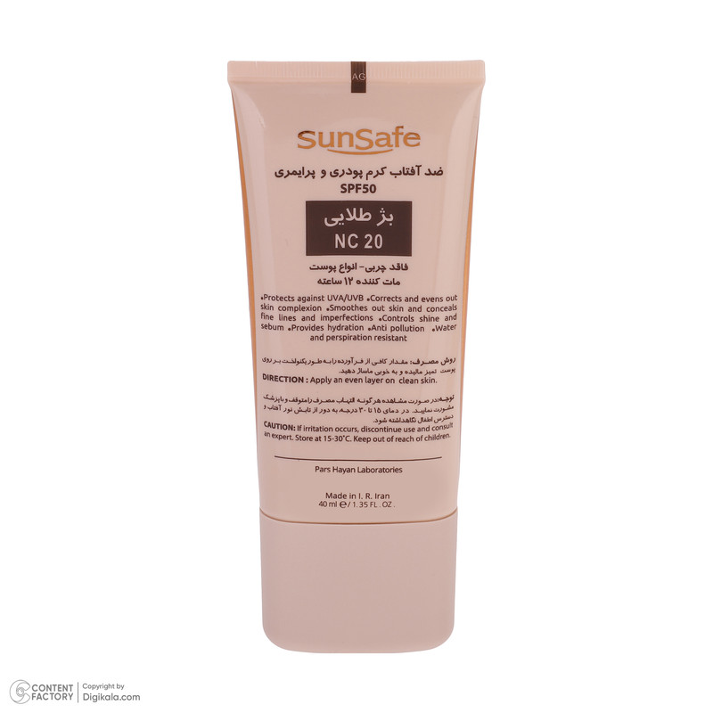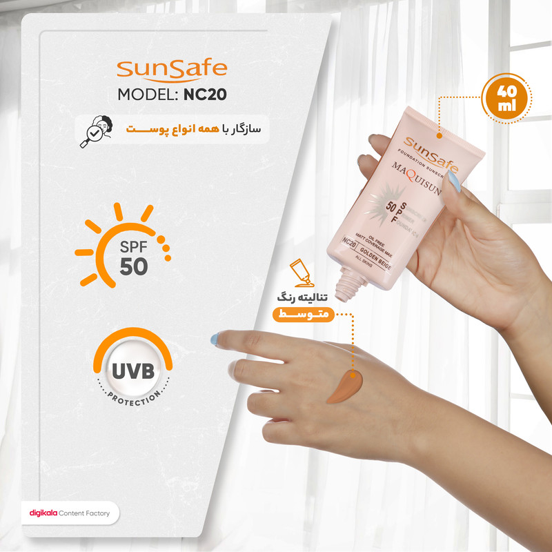 کرم ضدآفتاب رنگی سان‌سیف SPF50 مدل NC20 مناسب انواع پوست، حجم 40 میلی‌لیتر