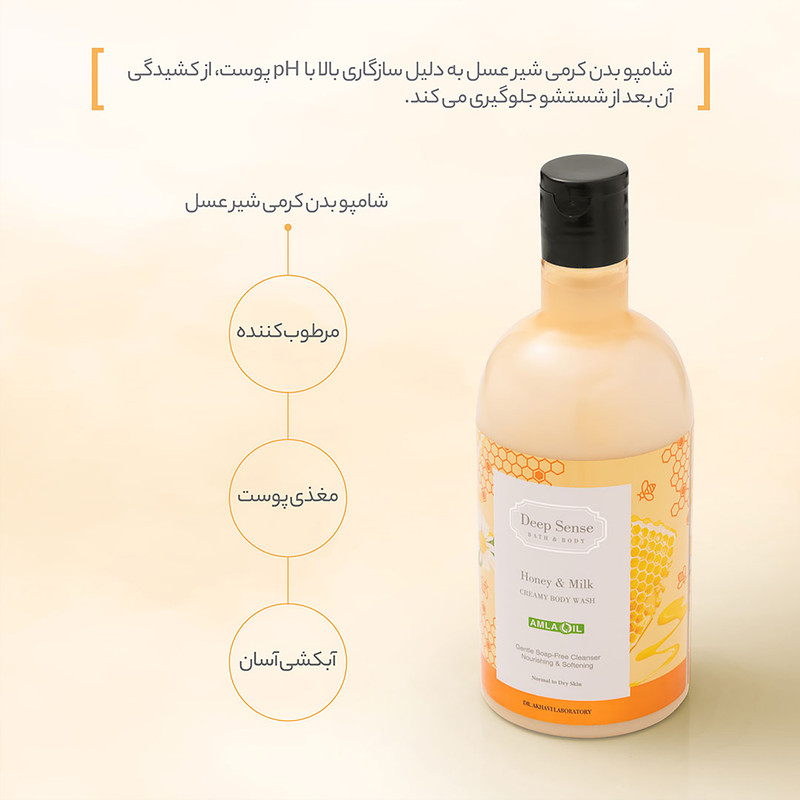 شامپو بدن دیپ سنس مدل شیر و عسل مناسب پوست های خشک و معمولی حجم 400 میلی لیتر