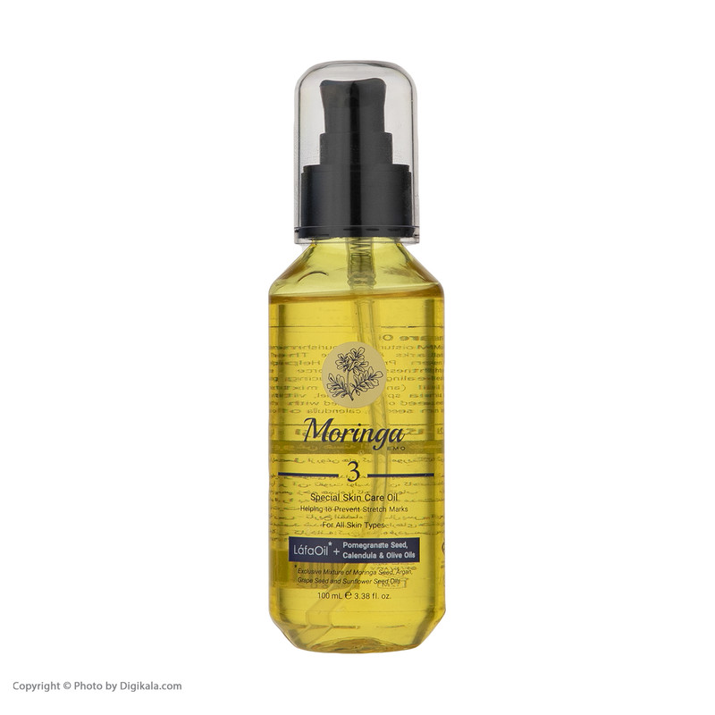 عصارههای موجود : LáfaOil (لافااُیل: ترکیبی انحصاری شامل روغنهای گیاهی مورینگا، آرگان، هسته انگور و دانه آفتابگردان و ویتامین A و E) + روغن هسته انار، گل همیشه بهار و زیتون این محصول، عاری از هر گونه ماده نگهدارنده و اسانس است.