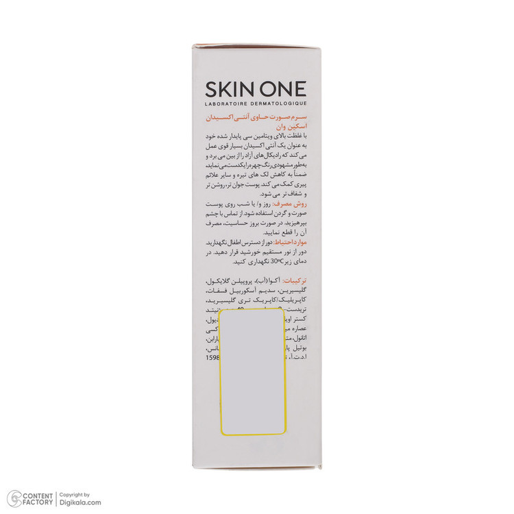 سرم صورت حاوی آنتی اکسیدان اسکین وان با غلظت بالای ویتامین سی پایدار شده خود به عنوان یک آنتی اکسیدان بسیار قوی عمل می کند که رادیکال های آزاد را از بین می برد و به طور مشهودی رنگ چهره را یکدست می نماید، ضمنا به کاهش لک های تیره و سایر علائم پیری کمک می کند. پوست جوان تر، روشن تر و شفاف تر می شود.