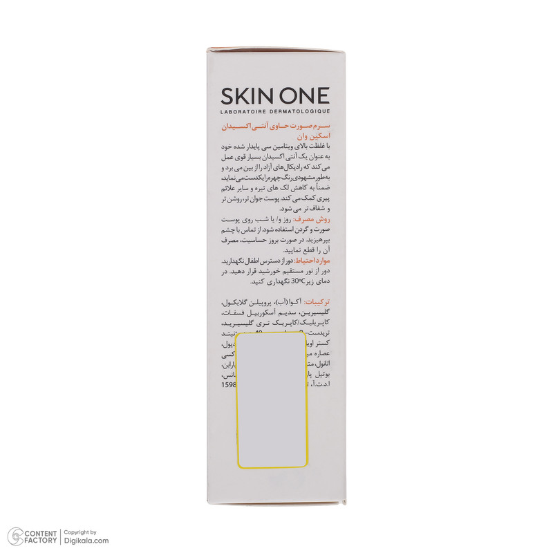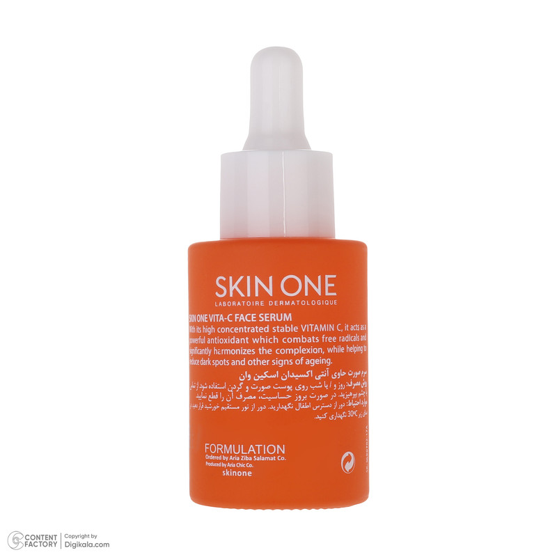 سرم صورت حاوی آنتی اکسیدان اسکین وان با غلظت بالای ویتامین سی پایدار شده خود به عنوان یک آنتی اکسیدان بسیار قوی عمل می کند که رادیکال های آزاد را از بین می برد و به طور مشهودی رنگ چهره را یکدست می نماید، ضمنا به کاهش لک های تیره و سایر علائم پیری کمک می کند. پوست جوان تر، روشن تر و شفاف تر می شود.
