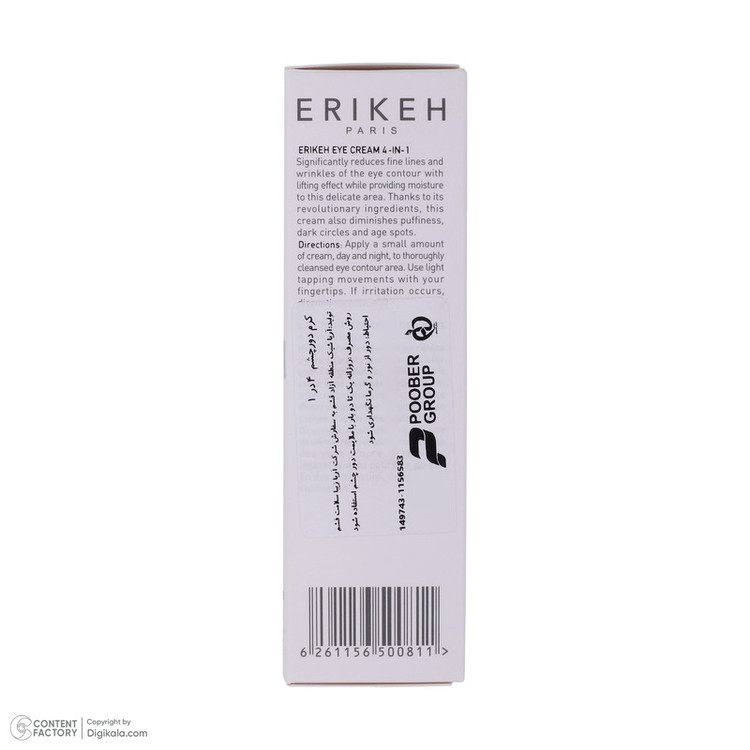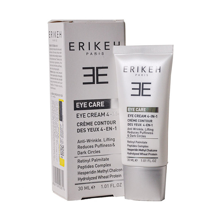 خستگی، استرس و اضطراب می تواند باعث شود چهره ی شما بسیار خسته دیده شود و تیرگی و پف زیر چشم شما را افزایش دهد. با استفاده از کرم دور چشم 4 در 1 اریکه می توانید سلامتی را به زیر چشمان خود باز گردانید. این کرم دور چشم با فرمولاسیون ویژه ای که درون خود دارد می تواند با افزایش جریان لنف در پوست زیر چشم، تیرگی های زیر چشم را کاهش داده و می تواند باعث روشن شدن و شفافیت پوست زیر چشم شود. ترکیبات مرطوب کننده موجود در این کرم باعث می شوند که از خشکی پوست اطراف چشم جلوگیری کرده و با افزایش الاستین به انعطاف پذیری و لیفت این قسمت از صورت جلوگیری می کند. حاوی فیلتر های ضد آفتاب و خواص آنتی اکسیدانی بوده که می تواند از آفتاب سوختگی و آسیب دیدگی های رادیکال های آزاد جلوگیری کرده و در نتیجه پوست اطاف چشم سالم بماند. کرم دور چشم اریکه از افتادگی پلک جلوگیری کرده و مانع از ایجاد پف زیر چشم می شود. موادی که درون کرم دور چشم اریکه به تخلیه ی آب میان بافتی کمک می کنند، کاهش پیدا کرده و باعث می شوند که پوست زیر چشم سرحال و شاداب شود. علاوه بر موارد گفته شده می توان چین و چروک هایی که در اطراف چشم بوجود آمده باشد را کاهش داده و باعث جوانسازی پوست شد.
