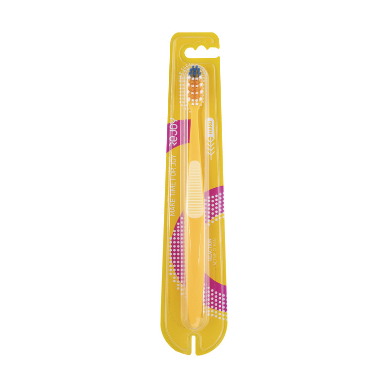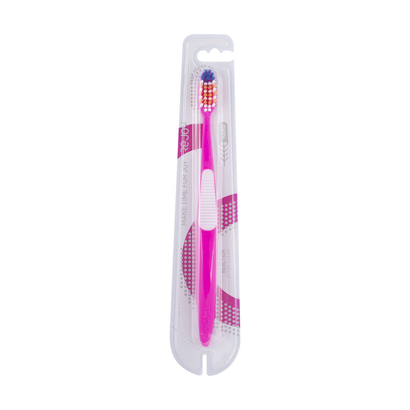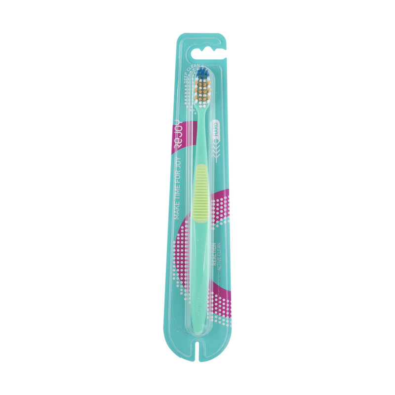 فعالانه از دندانهای خود مواظبت کنید! مسواک ریاکشن ریجوی با سرسختی هر چه تمامتر با پوسیدگیهای دندانی مقابله خواهد کرد. مسواک ری اکشن (Reaction) برند ریجوی (Rejoy) ساختاری بهینه برای پاکسازی دندانها و جلوگیری از آسیب رسیدن به لثهها دارد. الیاف مسواک ریاکشن از فنآوری DUPONT برخوردار است. سری مسواک به صورت پله ای Step طراحی شده است که اختلاف سطح الیاف بلند نسبت به الیاف کوتاه باعث سطح دسترسی هر چه بیشتر فیلامنتها به سطح دندان ها میشود. این مسواک با الیاف کوتاه و بلند از سلامت لثهها محافظت کرده و به راحتی فضاهای بین دندانی را پاک میکند. الیاف متراکم در قسمت سر مسواک جهت پاک کردن بهینه حتی برای دندان های انتهایی که دسترسی به آنها دشوارتر است، بسیار مؤثرند. بر روی دستهی مسواک جاییکه انگشت شست قرار می گیرد یک ضربه گیر قرار دارد که جلوی فشار بیش از حد به بافت لطیف دندانها و لثه ها را میگیرد. این مسواک در 5 رنگ متنوع موجود است.