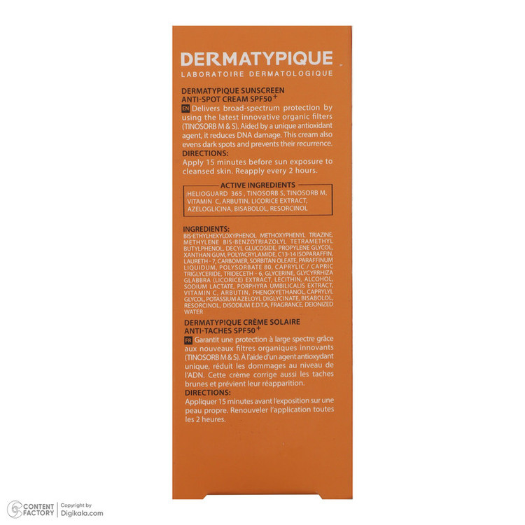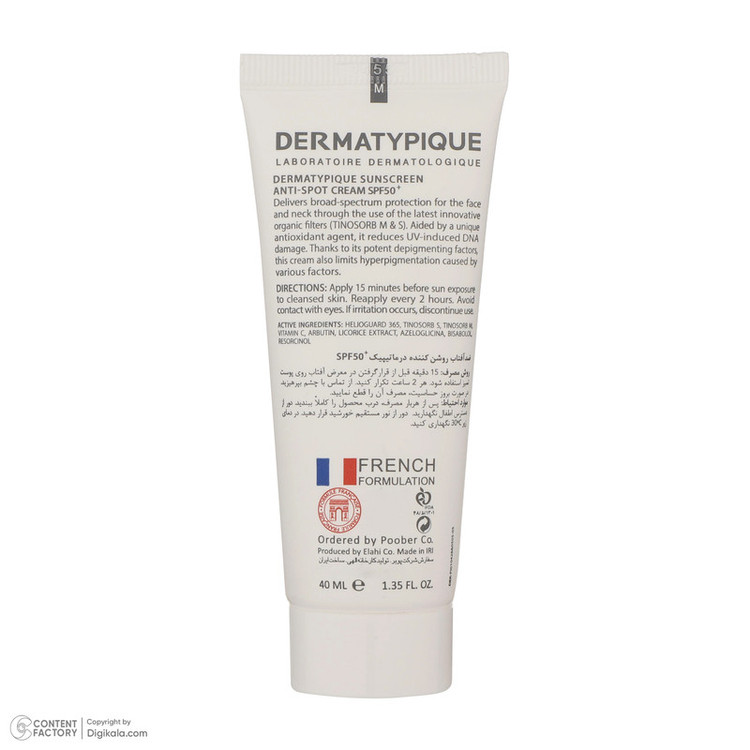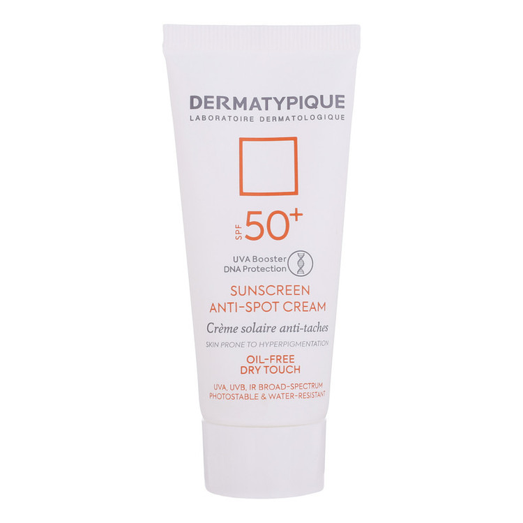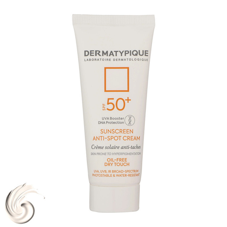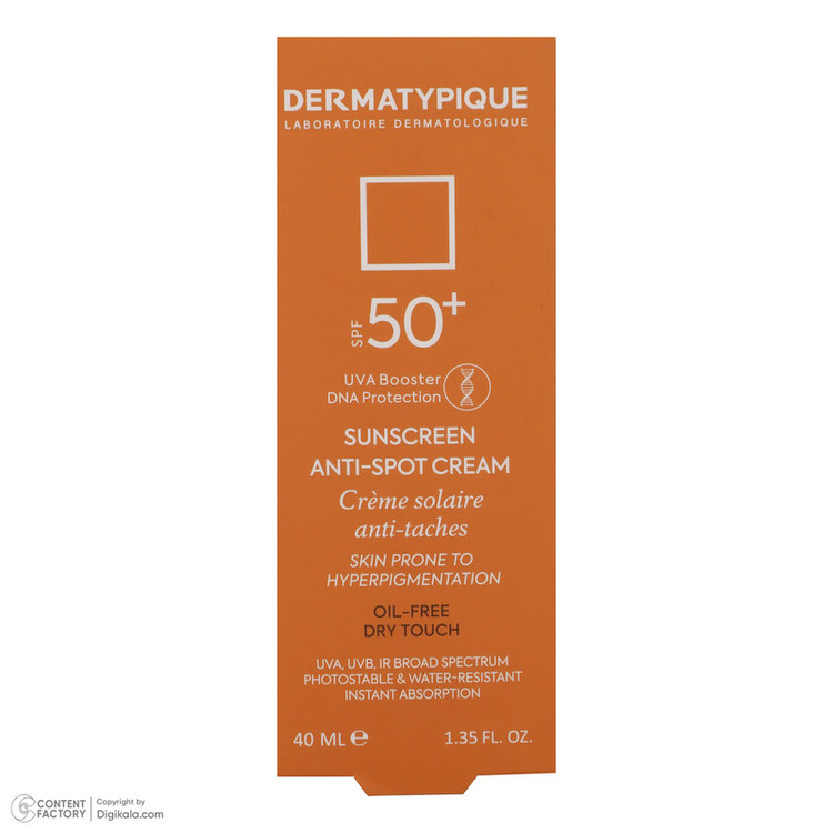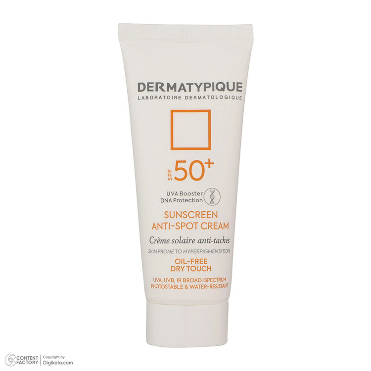 کرم ضدآفتاب بی‌رنگ درماتیپیک SPF50 مدل Anti spot مناسب انواع پوست، حجم 40 میلی‌لیتر