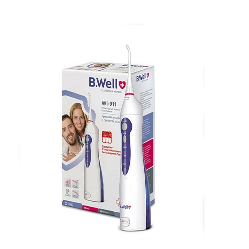 واترجت دندان بی ول مدلWI-911 ، یک واترجت کوچک و کم وزن است و قدرت بسیار بالا در تمیز کردن دندان ها وقابلیت پر شدن مخزن بدون جدا شدن از دستگاه دارای قابلیت روی سه حالت عملکرد نرمال(شست وشوی معمولی)نرم(شستوشوی ملایم لثه های حساس) پالس(شست وشوی لثه) و دارای باتری لیتیومی ک قابلیت نگهه داری شارژ و کار با دستگاه تا8 ساعت دارد . واترجت دندان B.WELL، ساخت سوئیس است،ظرفیت مخزن : 150 میلی لیتر،دارای باتری لیتیومی قابل شارژ،قابلت چرخش 360 درجه ،دارای 2 نازل استاندارد،عملکردی بسیار کم صدا،دارای عملکرد ضربه ای و نرم،دارای قابلیت و سیستم خاموشی خودکار موتور، در صورت عدم استفاده بعد از (2) دقیقه،دارای طراحی مخصوص جهت پاکسازی دندان ها با پاشیدن آب به تمام نقاط دهان و دندان،دارای نازل جهت پاکسازی واترجت، پاکسازی زبان، پریودنتال (برای لثه) ، ارتودنسی (برای بریس ها) وسیله ای کاربری، جهت افزایش بهداشت دهان و دندان، جلوگیری از پوسیدگی، فاسد شدن و خرابی دندان میباشد