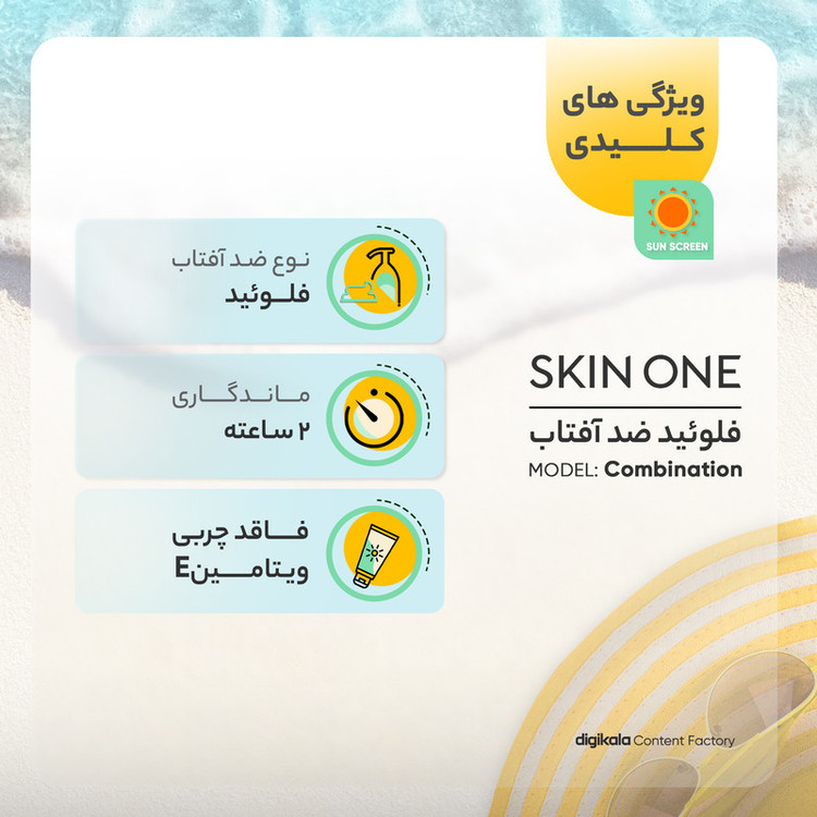 فلوئید ضدآفتاب بیرنگ اسکین وان SPF50 مدل combination، مناسب پوستهای جرب و مختلط، حجم 40 میلیلیتر