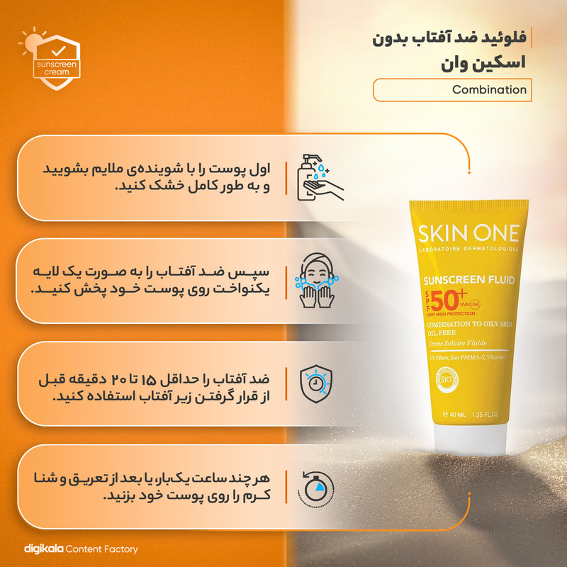 فلوئید ضدآفتاب بیرنگ اسکین وان SPF50 مدل combination، مناسب پوستهای جرب و مختلط، حجم 40 میلیلیتر