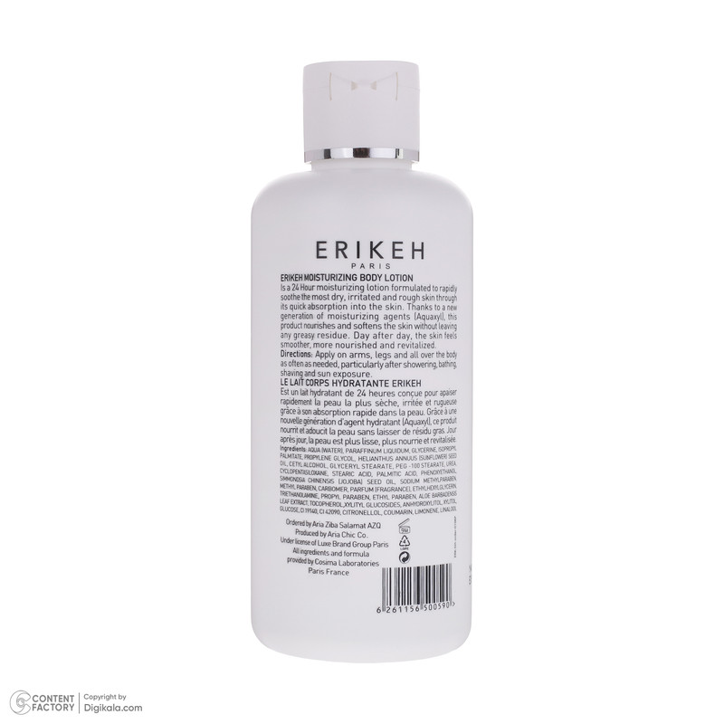 متاسفانه این کالا در حال حاضر موجود نیست. میتوانید از طریق لیست بالای صفحه، از محصولات مشابه این کالا دیدن نمایید.لوسیون مرطوب کننده بدن اریکه حجم 200ml، دارای خاصیت مرطوب کنندگی با قدرت جذب سریع و کامل میباشد و محصولی فوقالعاده موثر و مقرون به صرفه به شمار میآید. از ویژگیهای این لوسیون قابلیت آبرسانی فوقالعاده و دوام اثر طولانی است. لوسیون مرطوب کننده بدن اریکه حاوی پانتنول به عنوان تسکین دهنده و ضد التهاب است و با داشتن عصاره گیاه آلوئهورا به عنوان مرطوب کننده و بازسازی کننده قوی عمل کرده و همچنین با قدرت جذب سریع و کامل، لطافت و شادابی را به پوست میبخشد.