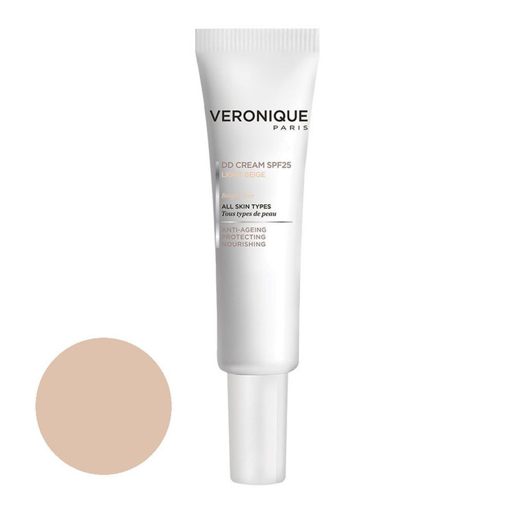 دی دی کرم VERONIQUE SPF25 یک محصول چند منظوره و کاربردی است و به طور هم زمان چهار مراقبت برای پوست شما را به ارمغان می آورد: محافظت در برابر پرتوهای فرابنفش، خنثی کردن اثر رادیکالهای آزاد، برطرف کردن علائم پیری پوست همچون چین و چروک و شل شدگی و آبرسانی به پوست. دی دی کرم رنگ بژروشن ورونیک پایه خوبی برای آرایش است و نقش پرایمر را ایفا میکند. دی دی کرم ورونیک یه کرم چند منظوره است که علاوه بر خاصیت پوشانندگی مثل یک کرم پودر سبک، ضد چروک نیز میباشد. کرم دی دی ورونیک آبرسانی خوبی را برای پوست شما به ارمغان می آورد و رنگ پوست را اصلاح و یکدست میکند. دی دی کرم بژ روشن VERONIQUE در واقع یک پرایمر، کرم پودر، مرطوب کننده و ضد چروک است و خاصیت ضد آفتاب نیز دارد.
