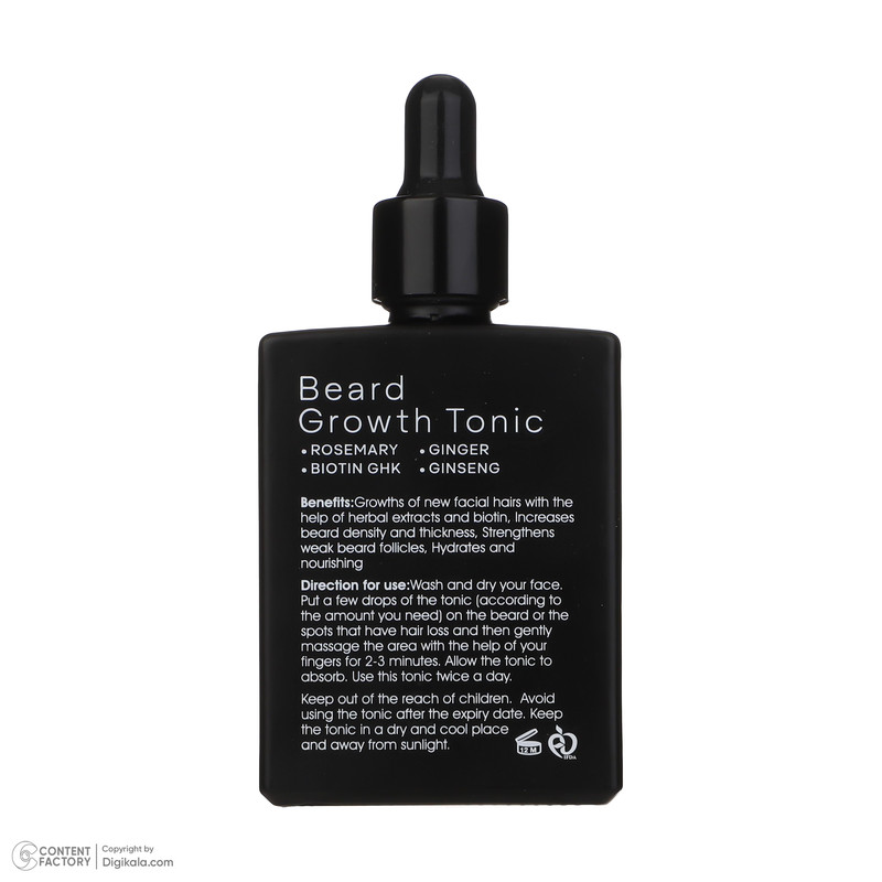 صورت خود را شسته و خشک کنید. چند قطره از تونیک را (با توجه به مقدار نیازتان) بر روی ریش یا نقاطی که ریزش دارد، بزنید و سپس به کمک نوک انگشتان به مدت 3-2 دقیقه ناحیه را به آرامی ماساژ دهید. اجازه دهید تونیک جذب شود. از این تونیک دو بار در روز استفاده کنید.